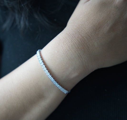 Sterling Silver Princess Cut Tennis Bracelet, Silver, Gold