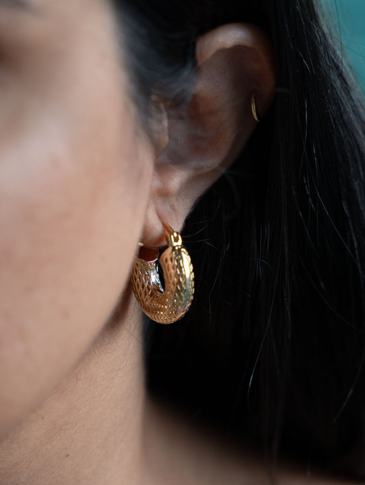 14k Gold Filled Small Chunky Mesh Hoops