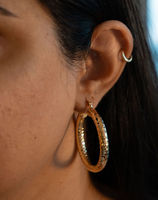 14k Gold Filled Textured Chunky Hoops