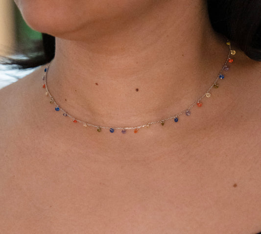 Sterling Silver Multicolor Gemstone Necklace