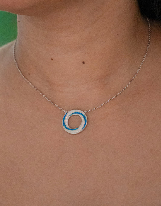Sterling Silver Opal Circle Necklace