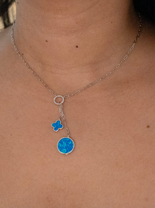 Sterling Silver Blue Opal Flower & Circle Necklace