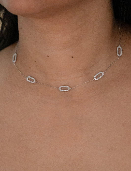 Sterling Silver Paperclip Pavé Necklace
