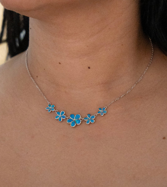 Sterling Silver Blue Opal Flower Necklace