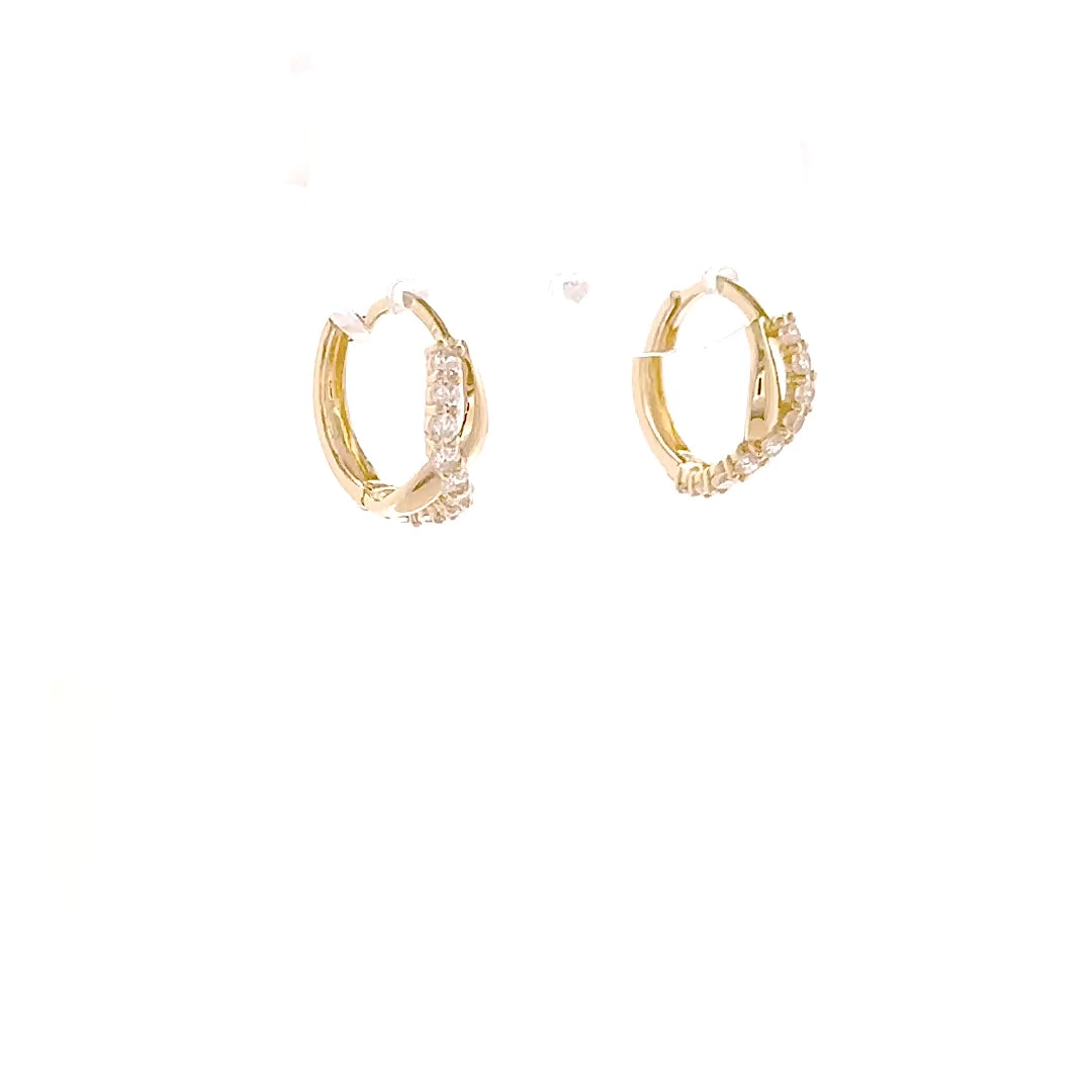 14k Solid Gold Twisted Huggie Hoop CZ Earrings, Infinity Huggies, 9.5mm Inner diameter, Yellow Gold, Genuine Gold, Cubic Zirconia Diamond, Small Earrings