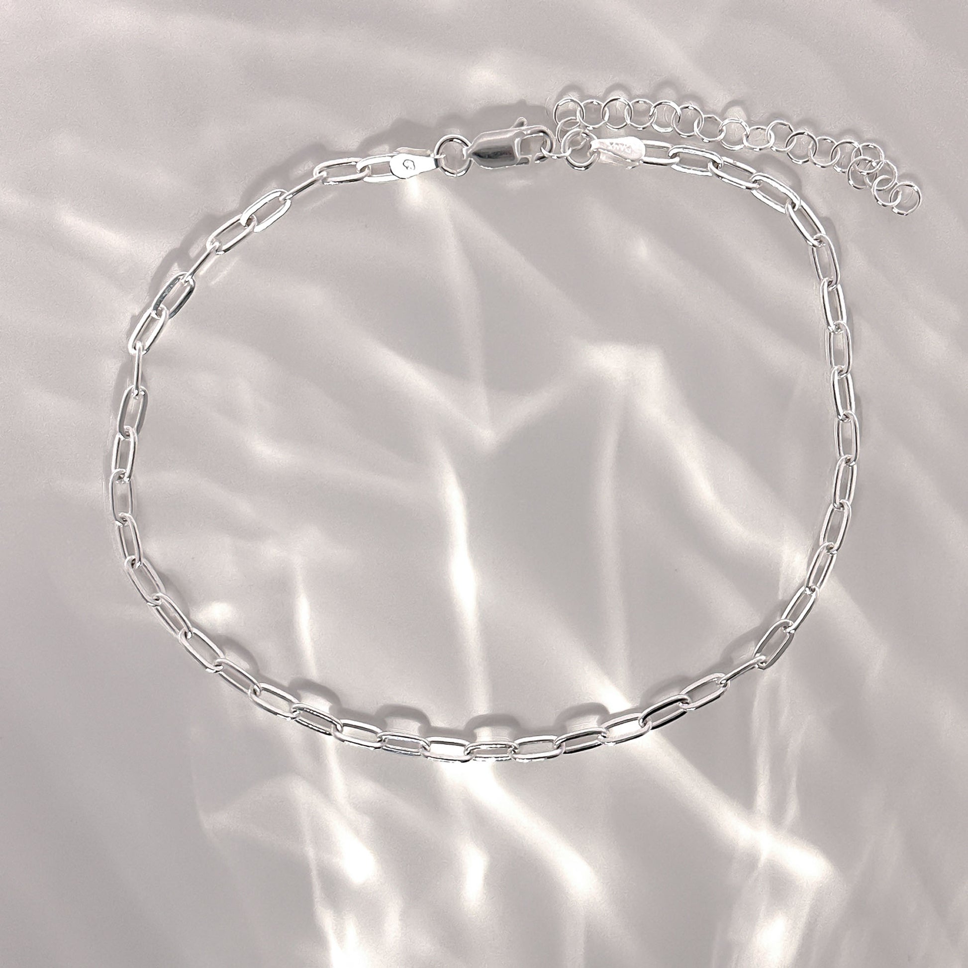 ☆ This silver anklet features a papeclip design, making a statement while maintaining an elegant, modern look.