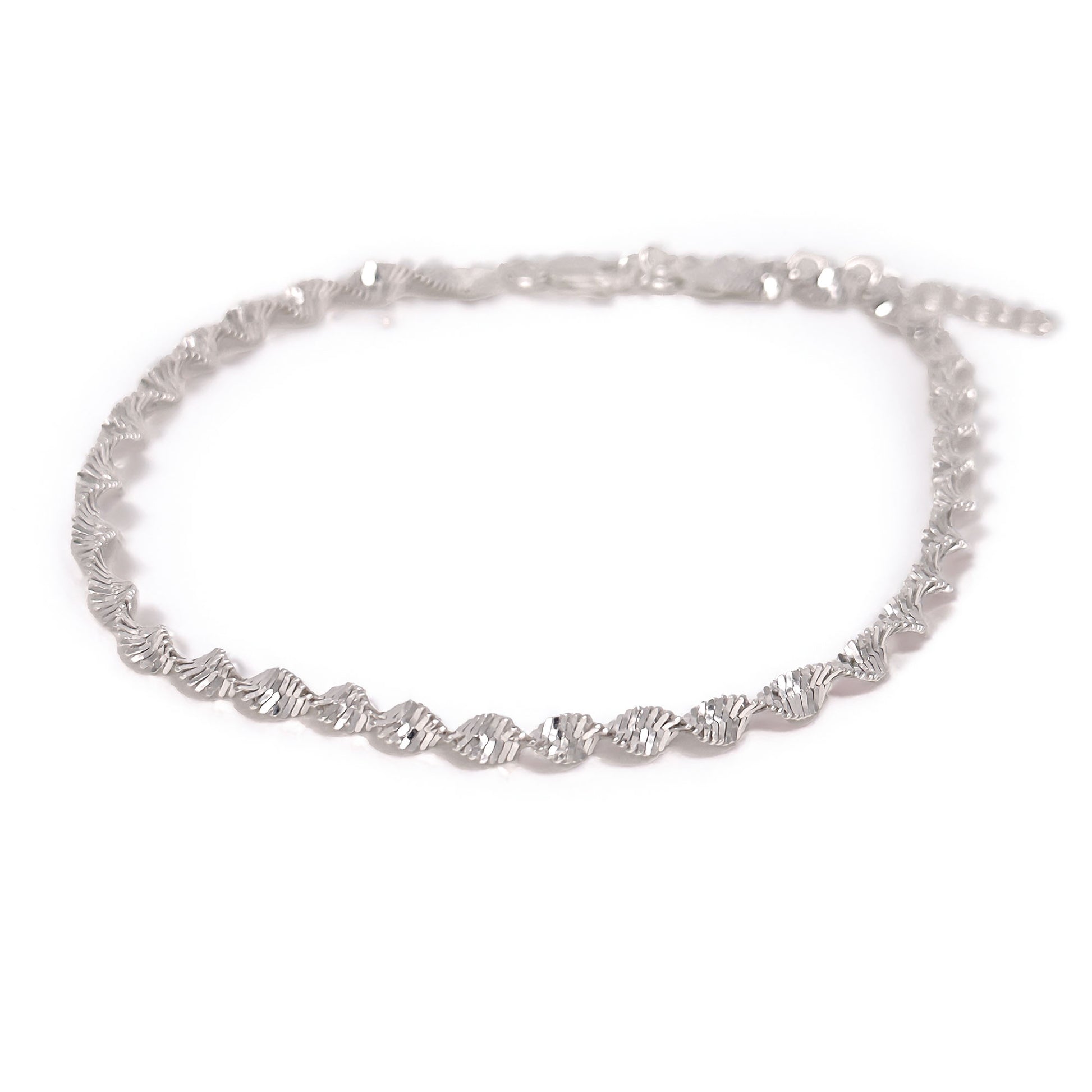 ☆ This silver anklet features a twisted herringbone design with a textured finish that catches the light beautifully.