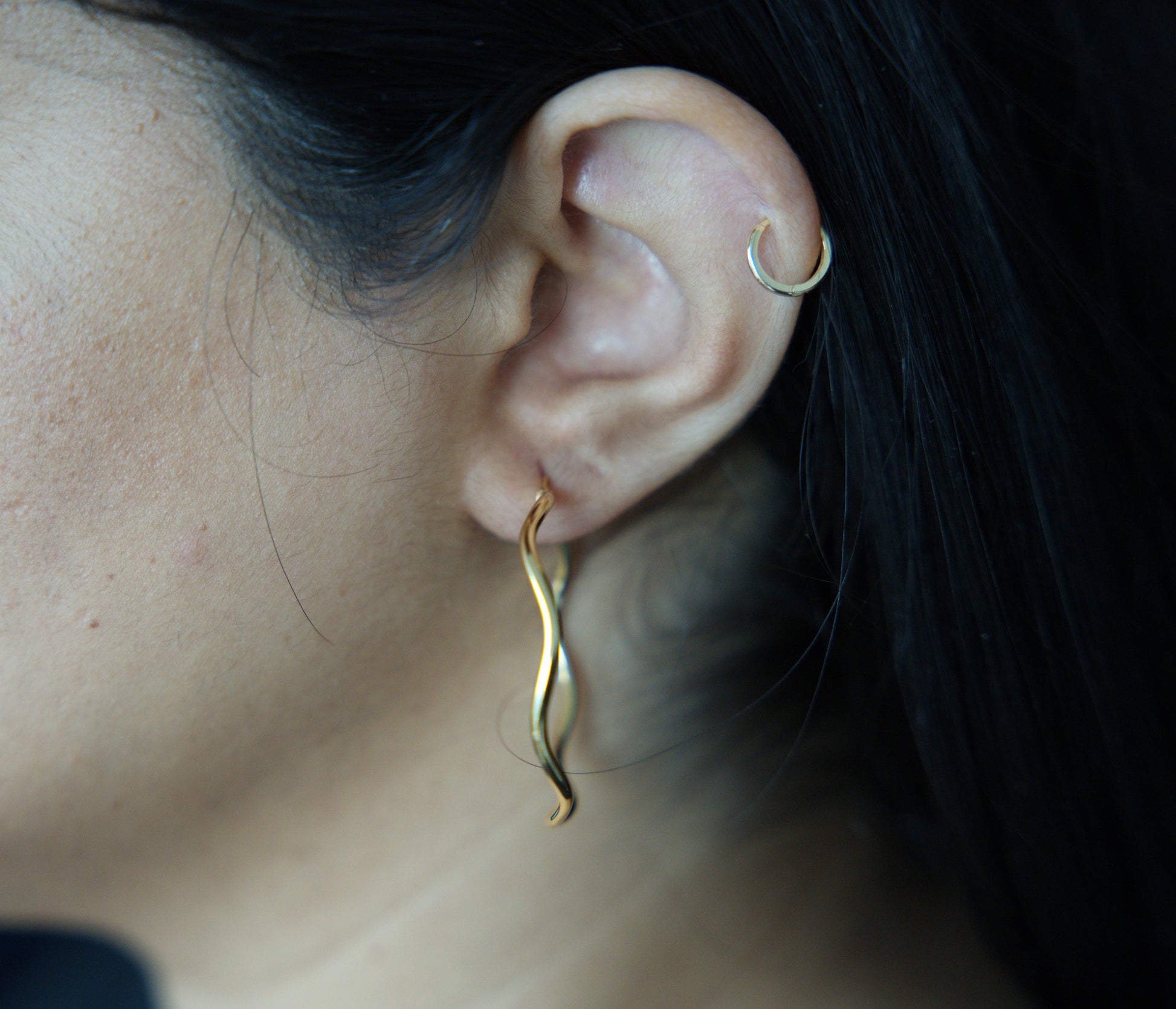 Gold Plated Sterling Silver Wavy Hoop Earrings