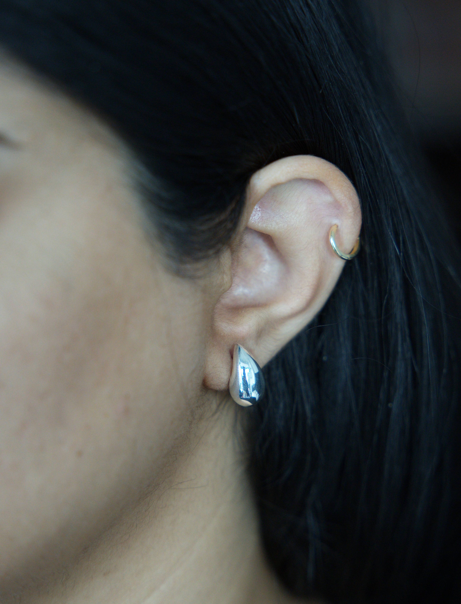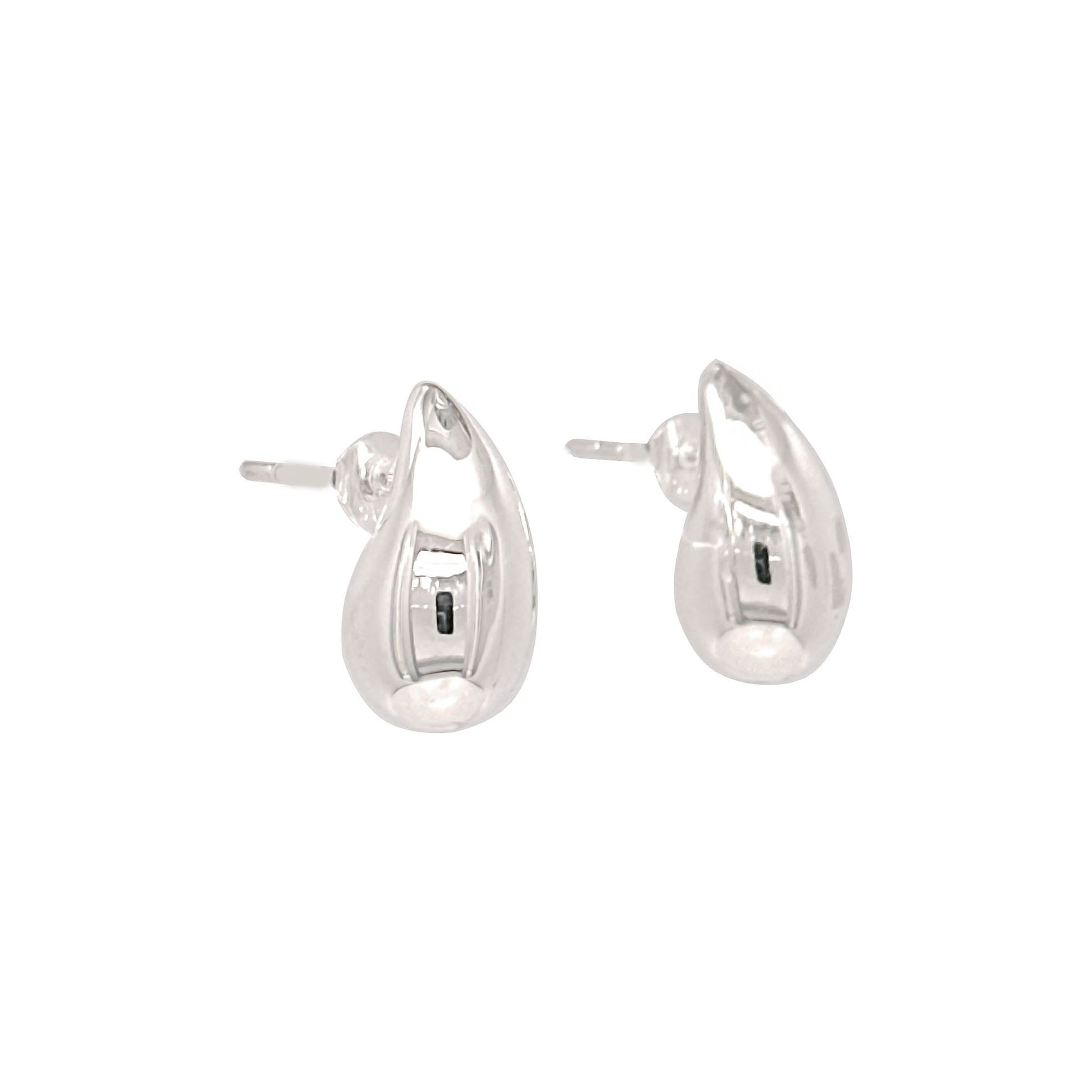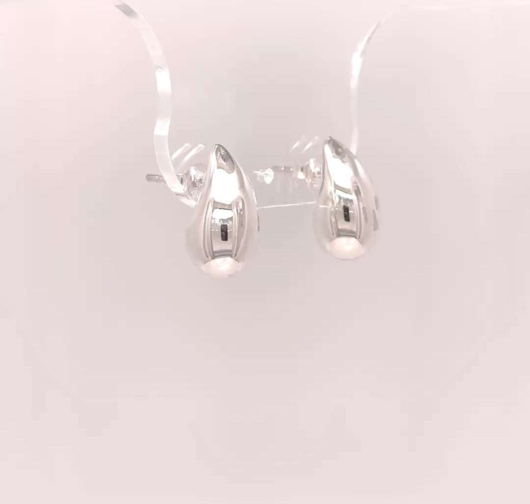 ☆ These silver earrings feature a sleek, polished teardrop design with a modern sculptural shape.